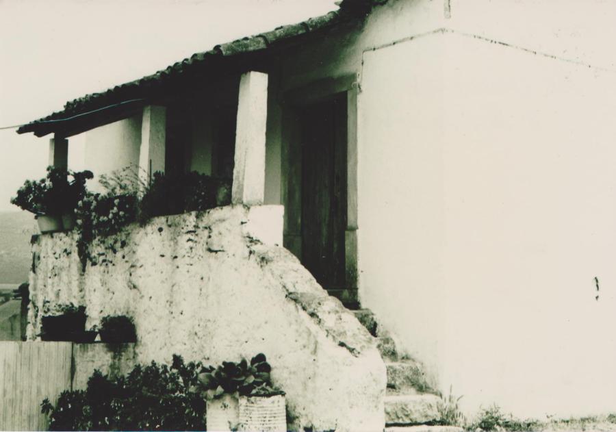 Casa das Saloias na Rua do Ferreiro com Alpendrede colunas e vasos floridos