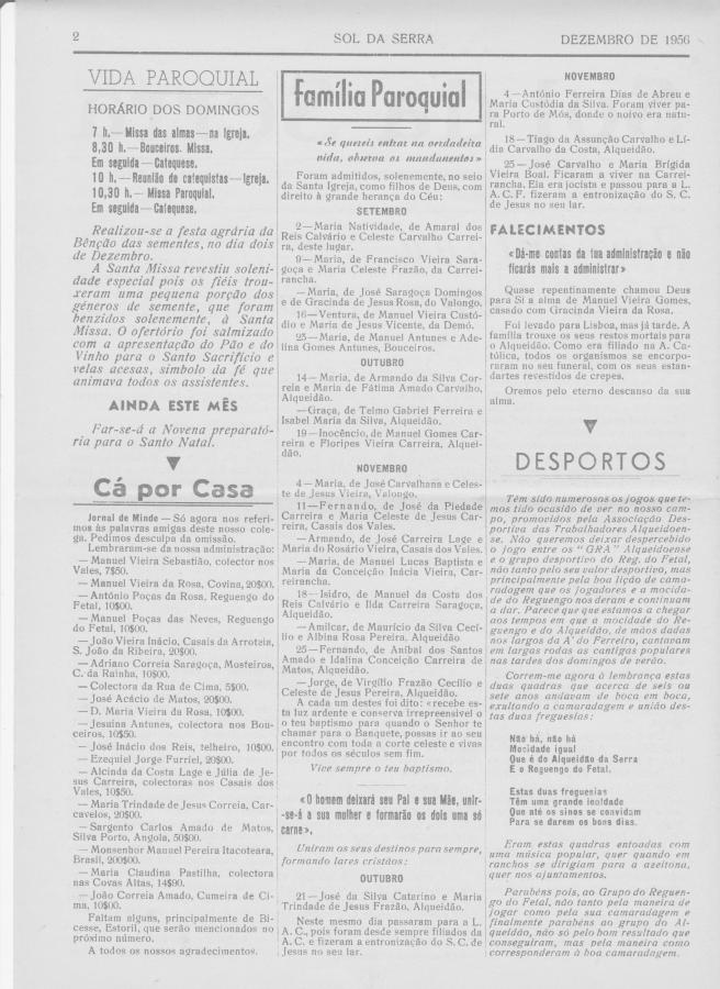 O Sol da Serra nº 5 de Dezembro de 1956, onde foi publicada a noticia do casamento de José Catarino e Trindade Frazão